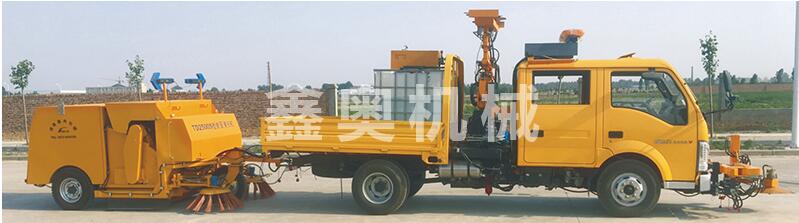 本機的機械臂設置有起重吊裝機構(gòu),可作為隨車吊為道路養(yǎng)護人員裝卸小型施工設備(250公斤以下)提供方便;如果機械臂換裝清洗刷輥并配用鑫奧機械生產(chǎn)的給水裝置,還可以清洗W板、隔音屏、隧道等市政設施清洗工作。