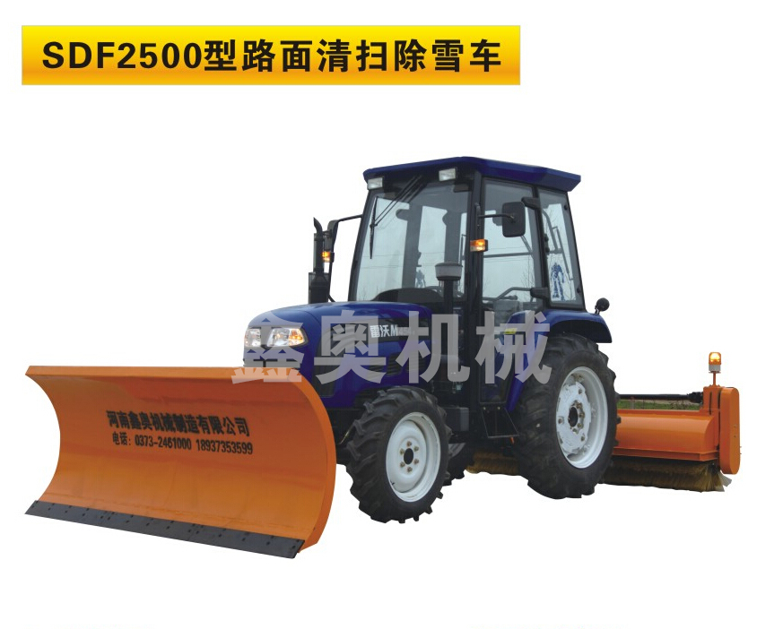 該推雪、清掃車主要由拖拉機底盤、清掃輥、推雪鏟及液壓控制系統(tǒng)組成,屬于推雪、掃雪及郊外公路垃圾無須回收的路面清掃專用設(shè)備。后置清掃裝置適應(yīng)于多種雜物的清掃;諸如粉塵、碎石塊、樹葉、紙屑及冬季除雪等。除雪作業(yè)采用前推后掃其效果可達(dá)到97%。